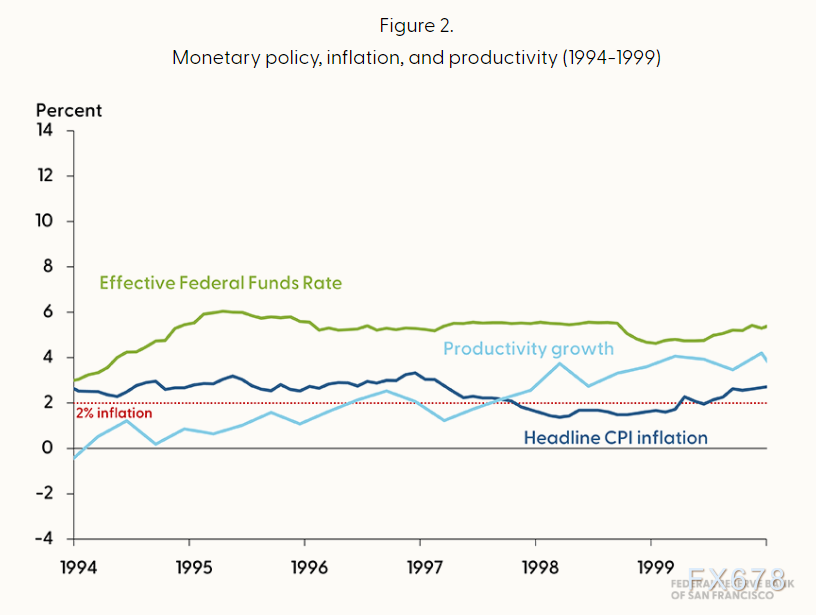 同时20世纪90年代,市场将面临截然不同的格局。那也是政策制定者的攻坚时期:劳动力市场情绪谨慎、失业率相对偏低、通胀处于高位,同时计算机与互联网技术有望催生显著的生产率提升。