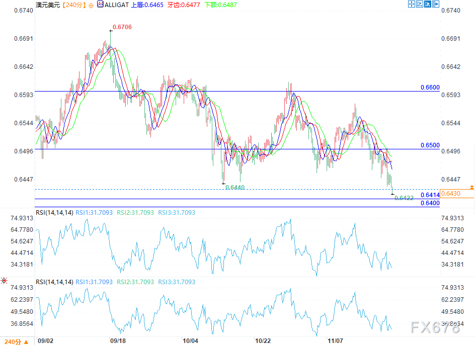 汇通财经APP讯——周五(11月21日)欧盘时段,由于美国劳动力市场统计数据公布后美元走强,澳元/美元汇率盘中下跌至0.6430附近。