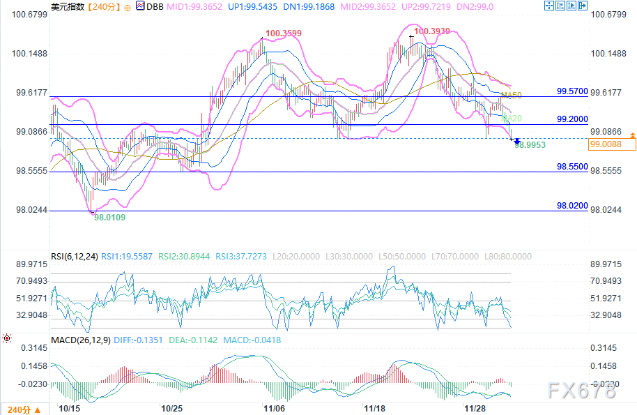 汇通财经APP讯——周三(12月3日)欧洲时段,美元指数延续跌势,向99一线靠拢,创下逾两周新低。此次持续下行反映出